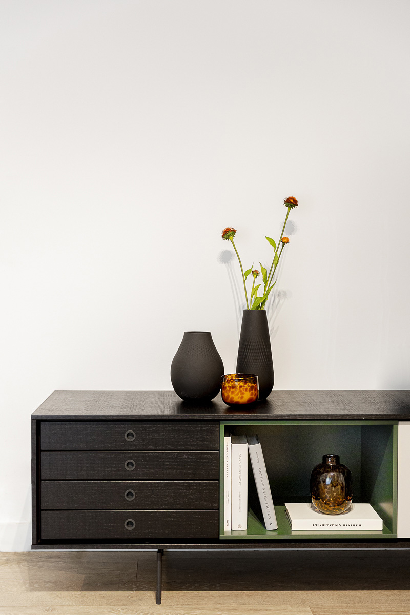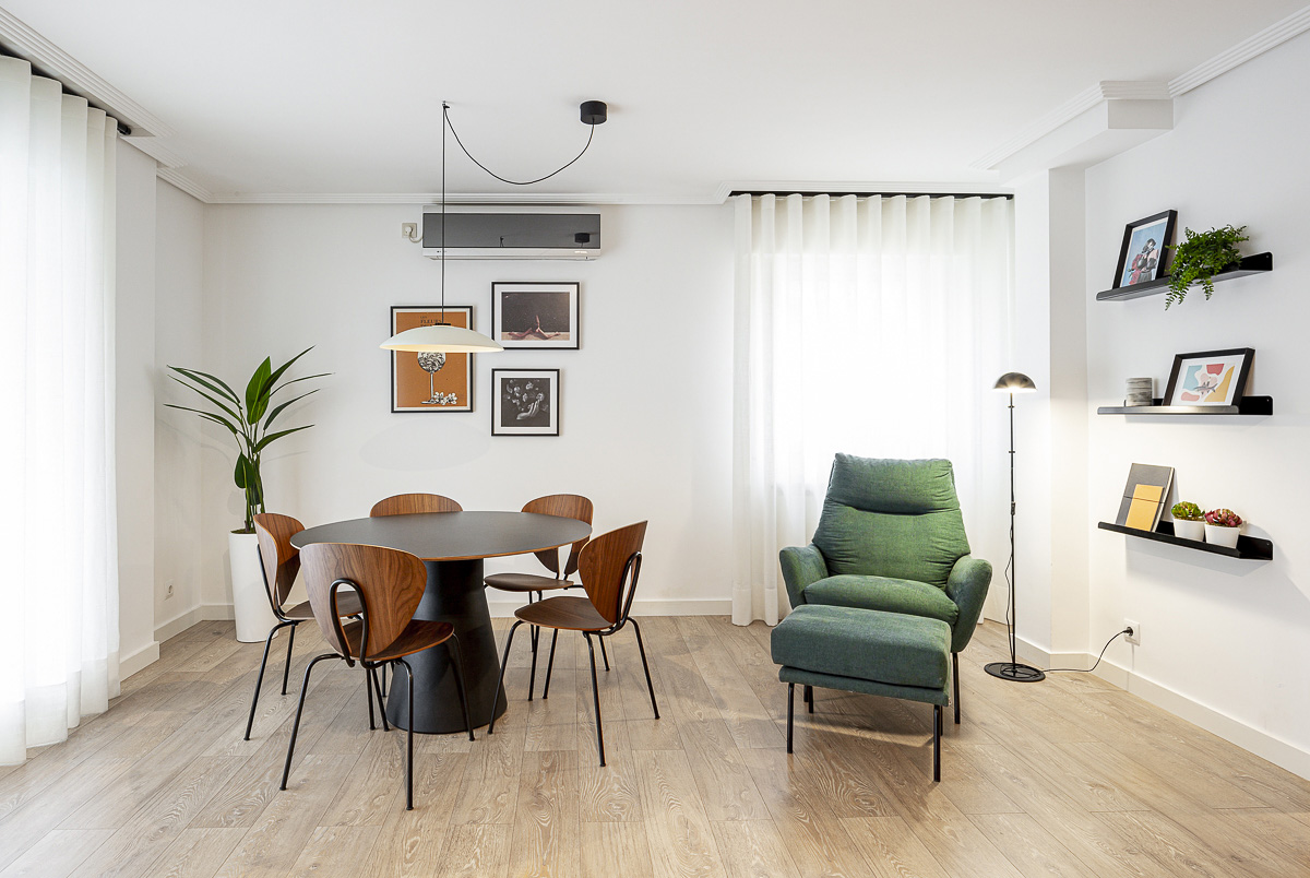 Proyecto de restyling de varias estancias de la vivienda, en el que se integraron piezas existentes con otras de nueva adquisición. En base a las nuevas necesidades del cliente se plantea la propuesta decorativa, la cual abarca desde el amueblamiento de las estancias, diseño de mobiliario a medida, decoración y estilismo, hasta detalles en elementos decorativos y textiles que cubren las necesidades del cliente y reflejan su estilo de vida.