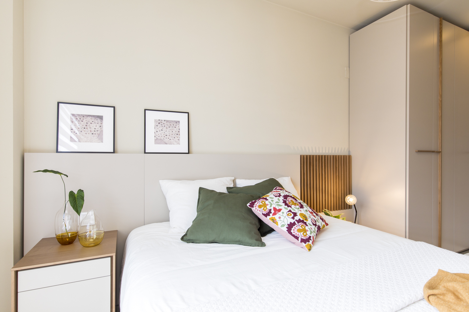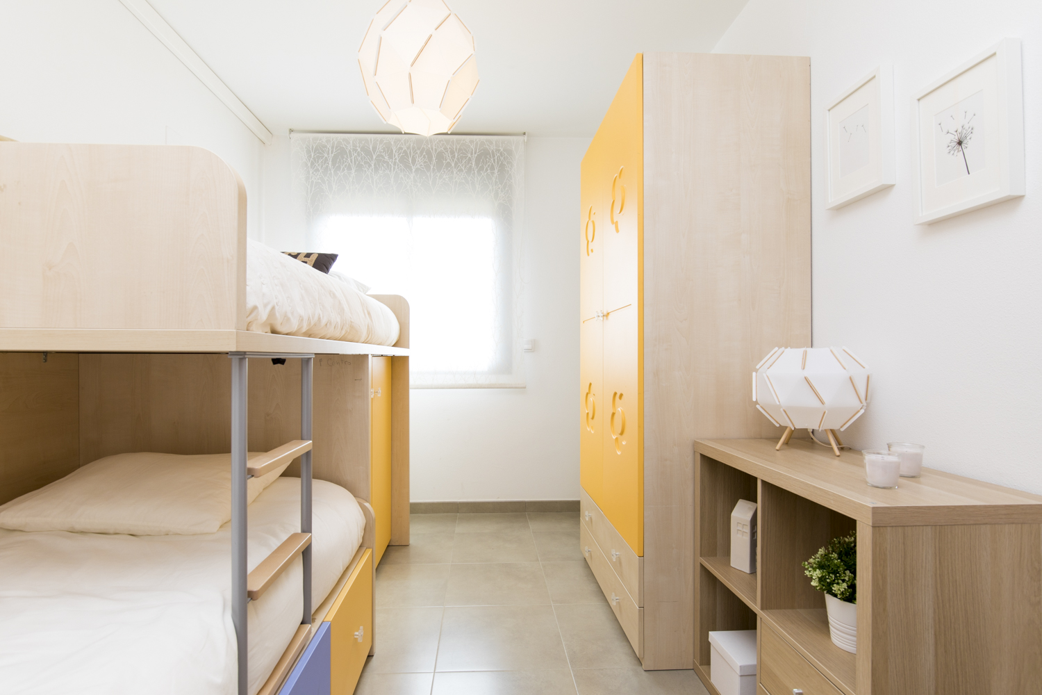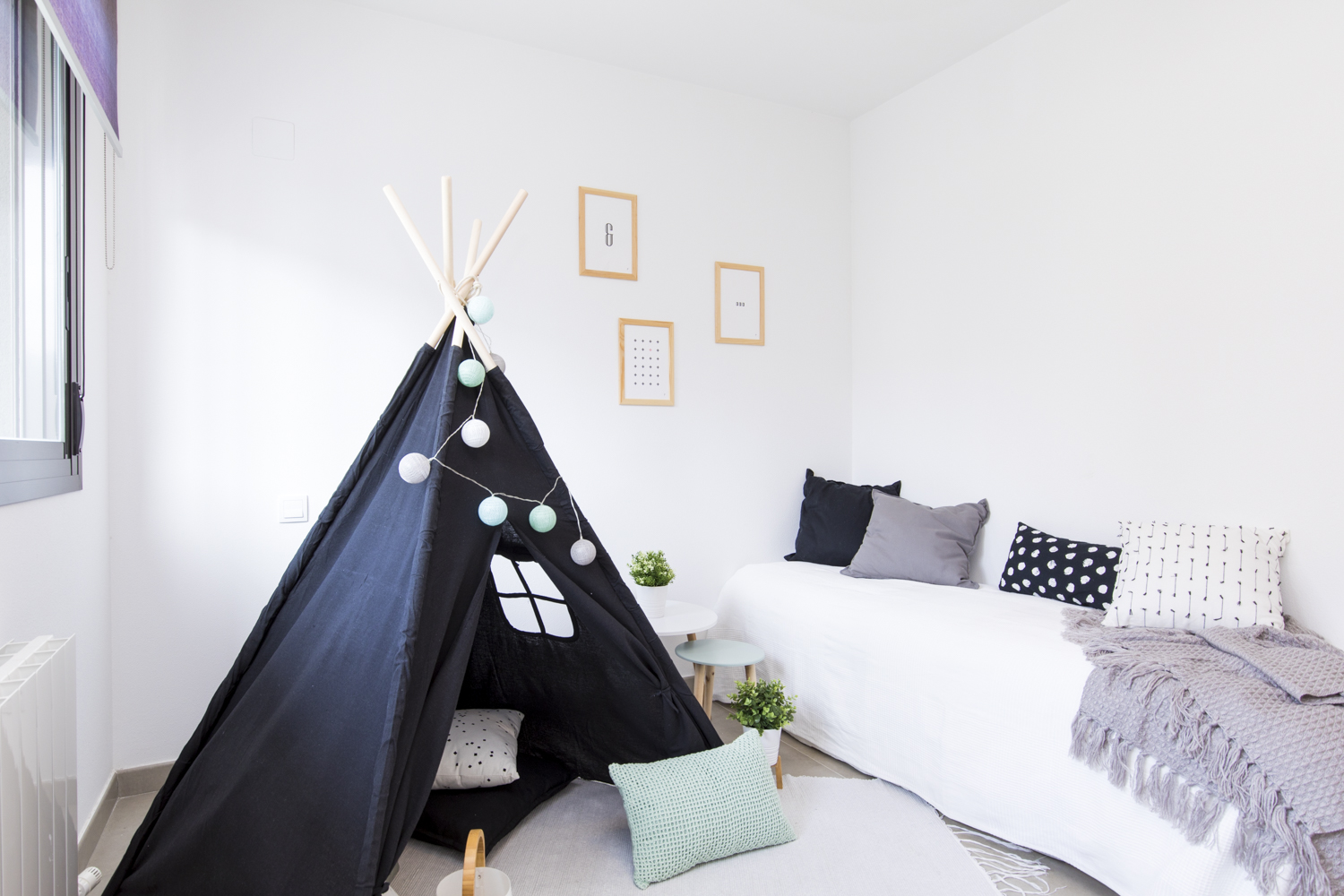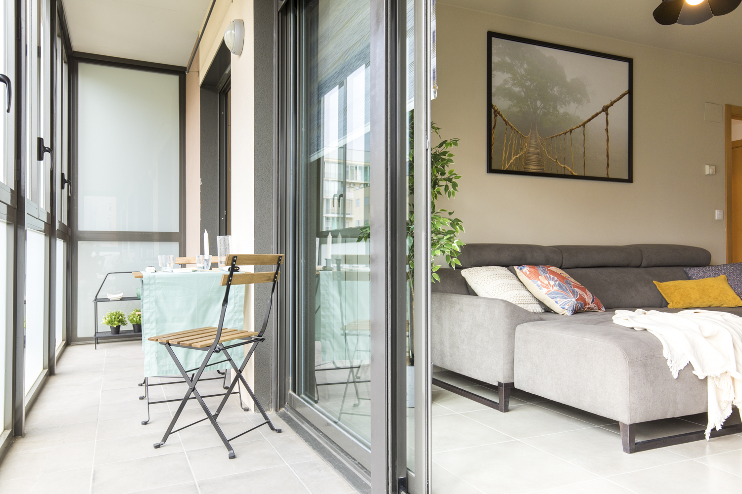 Vivienda semiamueblada en la que se plantea crear una imagen serena, pero actual, que realce el mobiliario de líneas depuradas del que consta el inmueble, complementando con material de atrezo y elementos decorativos, dando un toque acogedor para que el futuro comprador se vea viviendo allí.